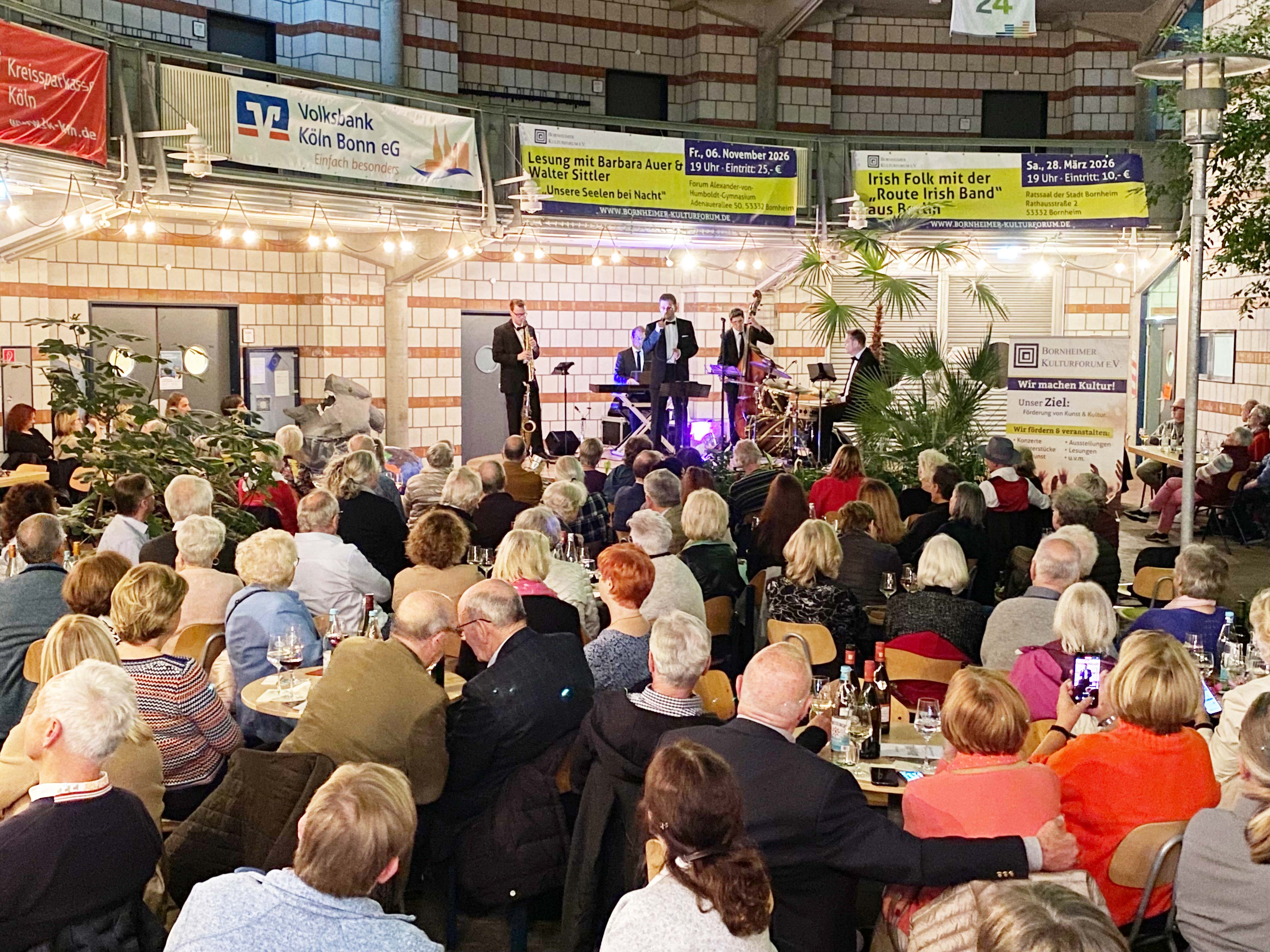 Die Veranstaltung Jazz und Wein wird auch im nächsten Jahr wieder in der Oase der Europaschule stattfinden, und zwar am 16. Oktober 2026. Bislang war der Eintritt zu Jazz und Wein frei. Aber aus organisatorischen Gründen wird das Bornheimer Kulturforum für die nächste Veranstaltung einen Eintritt von 10 EUR erheben. „Wir möchten damit sicherstellen, dass wir die für die Oase vorgesehene zulässige Zuschauerzahl nicht überschreiten“ , so Wolfgang Henseler.